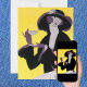 Vintage illustration art deco image featuring a sophisticated and stylish lady wearing a hat. She is drinking her afternoon tea and eating a fresh baked cupcake pastry. Original yellow version.