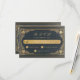 This blue, elegant wedding RSVP card, with a vintage air, has a vintage golden frame with baroque gold decorations on a dark blue background. The place for the name and the small circular checkboxes are faux gold foil. The title "RSVP" and the letter M are written in an elegant calligraphic script. All text can be personalised and has a golden colour similar to the gold decorations of the borders (except the calligraphic M, that is navy blue).