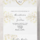 Vintage Elegant Floral Gold Heart Wedding All In One Invitation