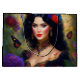 Vintage style portrait of a beautiful lady in black surrounded with colourful flowers and butterflies. Original art by Gifts_AtTheCorner Mjm©2023.
