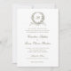 Vintage Elegant Olive Leaf Wreath Monogram Wedding Invitation Template. Traditional Wording Wedding Invitation Template. Elegant Script Calligraphy Wedding Invitation. Vintage Oak Leaf Wreath Wedding Monogram Crest Invitation