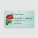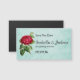 An elegant and romantic save the date wedding reminder. A vintage illustration of an open blossoming red rose with the stem visible and surrounded by green foliage. The background is a mint green fauz parchment texture. Customise with the bride and grooms name and their wedding date.