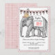 This sweet, circus inspired elephant will lead the way announcing to everyone that someone is having a birthday! Polka dots, a vintage Elephant illustration, festive type and a touch of whimsy round out the sweet look for this birthday invite!