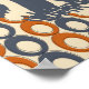 A fun vintage woodcut elephant poster featuring a mid-century background pattern of orange and grey ovals.