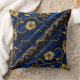Vintage Embroidery look Blue Gold Flowers Cushion
