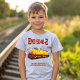 The t-shirt feels and looks great quality, a good thick cotton. It will be a little big for my son, but that means he will be able to wear it and not out grow it too soon. The print was as described on the order when personalised. True size, shape and colour T-shirt- thanks.