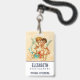 Name badge with a pair of sweet little angel cherubim with soft white wings and clothed in diaphanous garments. One quietly whispering in the others ear.
