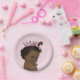 Custom vintage ethnic princess Baby Shower pink paper plates for girls' showers. Girls' elegant pink vintage princess theme baby shower plates with a beautiful vintage illustration of a cute and adorable African American baby girl with stylish pink Princess crown and a pink bow in her hair on a pretty baby pink background. Chic, beautiful, trendy, glamourous, girly, fun, fashionable girl Baby Shower plates for your Princess themed showers. If you need any assistance customising your product please contact me through my store and I will be happy to help. I have matching invitations and other matching products in my store.