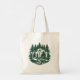 A vintage-inspired design featuring a dense forest of evergreen trees, a winding path, and a mountain peak in the distance. The design is simple yet striking, with a focus on clean lines and bold shapes. The colour palette is limited to green and white, creating a timeless and sophisticated aesthetic.