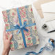 Vintage handkerchief fabric in blue and pink floral with swirls. Perfect for wrapping gifts of all kind, especially dainty, feminine presents.