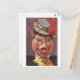 This is a reproduction of a vintage postcard showing a pig wearing a dress, glasses, a brooch, and a hat.