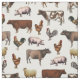 Wonderful vintage fabric with assorted farm animals: cows, pigs, roosters and sheep.