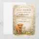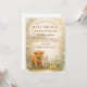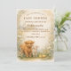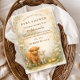 A charming countryside design featuring a fluffy calf, a sweet little lamb, and tiny yellow chicks nestled among soft meadow wildflowers. The warm parchment background and muted earth tones create a cozy, rustic atmosphere with a gentle storybook feel. Delicate greenery frames the layout while the farm animal illustration adds warmth and personality. Perfect for a neutral rural-themed celebration with classic farmhouse charm.