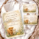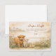 A charming countryside design featuring a fluffy calf, a sweet little lamb, and tiny yellow chicks nestled among soft meadow wildflowers. The warm parchment background and muted earth tones create a cozy, rustic atmosphere with a gentle storybook feel. Delicate greenery frames the layout while the farm animal illustration adds warmth and personality. Perfect for a neutral rural-themed celebration with classic farmhouse charm.