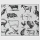 A rustic collage of vintage farm animals on a white/ grey toned textured look background. A great design for country barn lovers. The black and white illustrations of farm animals include sheep dog, sheep, goat, farm cat, cow, pig, turkey, chickens and much more. An ideal rustic themed design for your home or gift for someone special.