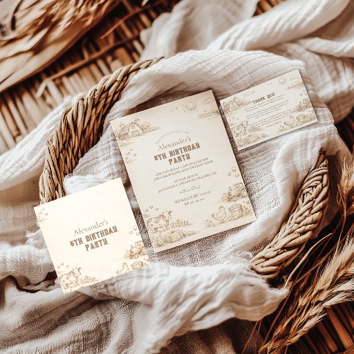 Vintage Farm Sketch Storybook Kids Birthday Invitation