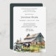 Men's Farm Birthday Party Invitation with a vintage tractor, barn and cow near a pond. The perfect invitation for guys who loves the farm life and the outdoor life. Add your party details with our easy template.