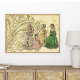 Vintage fashion illustrations from Paris, young ladies in beautiful dresses and hats with flowers and lace.