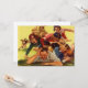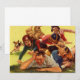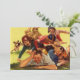 Vintage illustration family image featuring a father playing football with his children and their loyal pet dog. Dad is being tackled by his sons. Happy Father's Day!