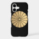 Protect your Apple iPhone with this tough Case-Mate iPhone XS Case with this famous Japanese Kiku Chrysanthemum Mon in faux gold (BE AWARE, this is a photo image!). The background is black.