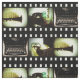 Exciting vintage film with antiques in for pictures. The pictures are of an old baby carriage, vintage typewriter, silver clarinet, and a black retro telephone is fun. The vintage photo design on this fabric will make a fun sewing project.