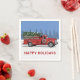 Decorate for holiday dinners and parties with these vintage fire truck paper napkins. This design features a red vintage fire truck carrying a Christmas tree in a snowy scene with a stand of pine trees in the background. The words "Happy Holidays" spelled out in simple red typography and your family name above the truck to personalise is in hand lettered script. Happy holidays! Designed by world renowned artist ©Tim Coffey..