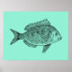 A scientific and detailed vintage black ink illustration of an ocean fish against a customisable aqua blue background. This fish poster would suit any home or office and would be a perfect gift for any fish lover or fishing enthusiast.