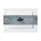 These charming belly bands feature a vintage black silhouette of lovers in a fishing boat, against a pale blue rustic wood background. Featuring the couple's names (personalised) or your text of choice.