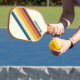 Step onto the court with a touch of nostalgia with our Vintage five Striped with Name Pickleball Paddle. Reminiscent of classic retro designs, this paddle features five distinct stripes in vintage-inspired colours, adding a timeless charm to your game. Personalise it with your name for a unique and individualised touch that sets you apart on the court. Whether you're a casual player or a seasoned pro, this paddle combines style and functionality to elevate your pickleball experience with every swing.