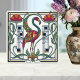 Vintage Flamingo Floral Geometric Patterned Tile