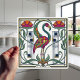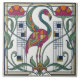 Step back in time with this stunning Art Deco ceramic tile, featuring a vibrant flamingo at its center. The design is adorned with elegant floral motifs and intricate geometric patterns in a rich palette of jewel tones, reminiscent of the Roaring Twenties. This tile is perfect for adding a touch of vintage sophistication and bold color to any space, from a kitchen backsplash to a statement wall. Its unique art nouveau inspired elements will surely be a conversation starter.