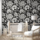 Vintage Floral Black and White Classic Wallpaper