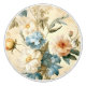 Vintage floral design in blues and golds including roses, daisies and various budding flowers drenched in nostalgia sunlight.