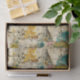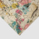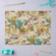 A richly layered pattern tissue paper featuring vibrant floral motifs in teal, yellow, and pink over a distressed, cracked parchment background. The design blends botanical illustrations with mixed-media collage elements, faint typography, and textured paper folds, creating an antique, weathered aesthetic.