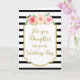 Pink watercolor rustic floral, vintage gold details and black and white stripes congratulations to our daughter on her wedding day card.