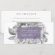 Chic gift certificate card displays two lines of custom text on a sheer lilac purple element, nestled on a bed of vintage style peony flowers in soft black and white. Add your desired gift certificate wording and business contact information on the reverse side. An elegant choice with a soft pop of colour for salons, makeup artists, spas or any business.