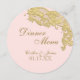 Blush pink with golden vintage lace design small round menu. Personalise text as preferred.