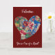 Original digital artwork consisting of a swatch of vintage floral wallpaper or textile from the art deco era. Patterns are from the public domain and custom fashioned by me into a contemporary heart silhouette. I applied a deep red background to harmonise with the floral patterns in the textiles. The front of the card states "Valentine, You're One of a Kind!" in keeping with the unusual colours and form of the heart silhouette. The inside states "My love, I hope you know how much I love you and how grateful I am to have you in my life!". You can add more text as you like or leave as is!