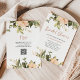This lovely bridal shower invitation features elegant peach coloured vintage peony flowers, with plenty of foliage, green leaves, and branches. They decorate a simple white background with modern script typography. The back of the card has a spot for a scannable QR code so guests can easily rsvp. The perfect way to invite friends and family to celebrate the upcoming wedding of the bride-to-be!