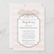 Personalised baby shower invitations with delicate and chic rustic vintage flowers illustrations in light peach pink, sky blue, dark grey and white. Customisable with your text.