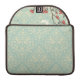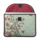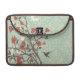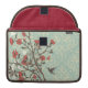 This Rickshaw Macbook Pro Sleeve has a muted aqua blue vintage damask pattern in the background with a branch with lots of coral coloured flowers all over. In the background, there are soft brown and white swirls behind the branch. To the right, there is a bird flying.