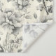 Large, beautifully detailed peonies or roses dominate the design, their petals rendered in soft shades of grey against a light cream background. The flowers are complemented by an array of leaves and stems, creating a lush, garden-like effect.