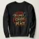 “In a World Full of Chaos, Be the Peace” is a beautifully detailed vintage-style design that blends elegant typography with symbolic botanical illustration. Featuring ornate gold lettering framed by vibrant red poppies and soft purple thistles on a deep black background, this artwork evokes calm, resilience, and quiet strength.