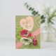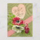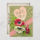 Very pretty antique image featuring white and pink flowers, a pink ribbon and heart on a green moire background.
