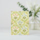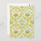 This postcard is a reproduction of a vintage floral/flower wallpaper with a geometric design and pink and blue flowers.