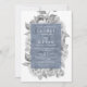 Dramatically elegant in shades of black, white and sheer slate blue, our Vintage Floral wedding invitation features a background of watercolor peony flowers in chic black and white. Your wedding details are displayed in white against a sheer slate blue rectangular element. A modern yet timeless design that's perfect for formal affairs in any season.