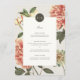 Introduce your wedding menu with timeless elegance. This menu from the Cora Collection features vintage florals in soft salmon, warm terracotta, and rich hunter green, beautifully paired with a modern monogram. A perfect blend of classic and contemporary, it sets the tone for an unforgettable celebration.