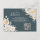 QR code wedding detail card inserts for your spring or summer wedding with elegant blush, cream and white watercolor flowers, pastel greenery and a navy blue background. Use these cards to direct your guest to your wedding website for more details about your accommodations, directions or to RSVP online.