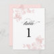 A blush pink table numbers card that coordinates with our Vintage Floral wedding invitations. Featuring a vintage floral botanical illustration with black calligraphy.