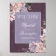 Plum, lilac and mauve floral wedding welcome sign poster